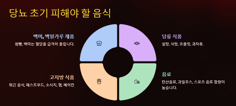 - 과도한 음주: 알코올은 혈당 조절을 방해하므로 제한해야 합니다.