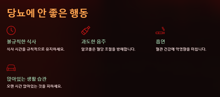 - 스트레스: 지속적인 스트레스는 혈당 조절에 부정적 영향을 미칩니다.